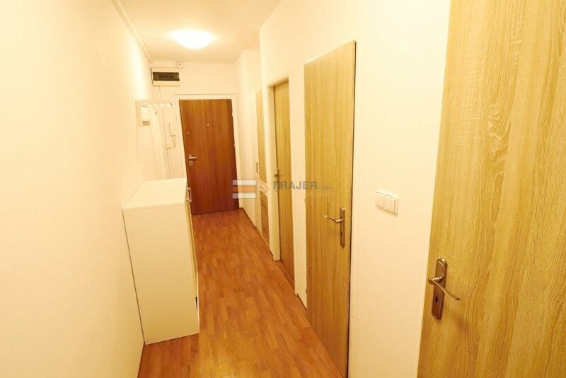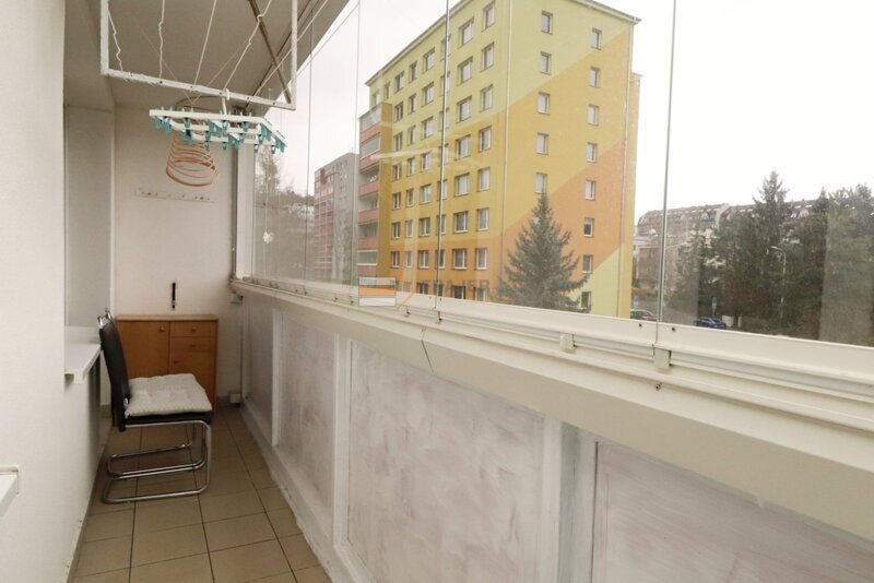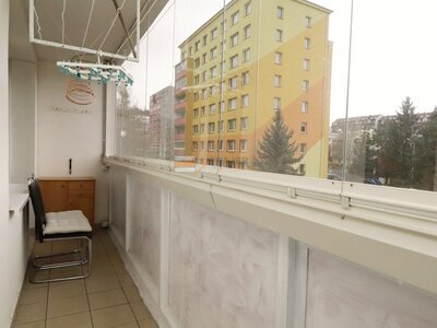 věšák a komoda) a zasklená lodžie (6 m2). Pokoje jsou orientované na